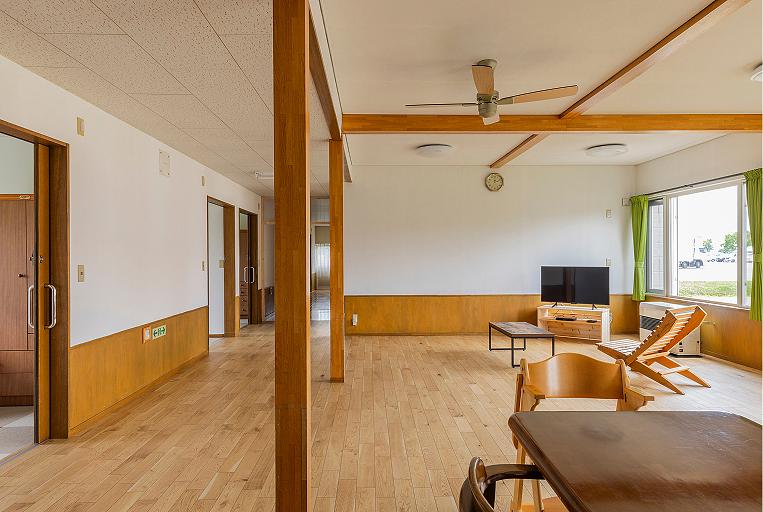 留学中の滞在は、車で5分の距離にある開放的な一軒家に。リビングは広く開放的で、思わず走り回りたいほど広々とした空間。大喜びのこどもたちの姿をみて、親も嬉しくなってしまうほどです。徒歩圏内にはリニューアルオープンしたばかりの地元に愛される温泉や、近隣に産直やスーパーもあり、月形名産の野菜や花を買う楽しみも。休日は、自然を楽しむアクティビティや観光があり、のんびりゆっくりと家族の時間を楽しむ生活が待っています。