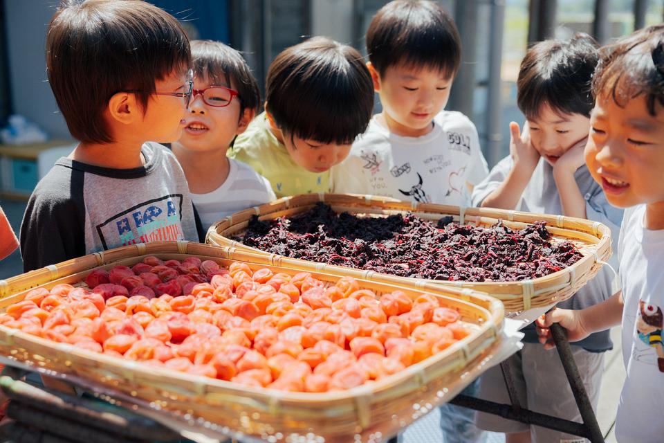 園では四季折々の“旬”を味わうことができます。初夏には梅の天日干しが毎年行われ、「梅の色、きれい」「シソの匂いがする」など五感で季節を味わいます。秋には近隣で採れた栗を茹でたり、庭で収穫したお芋を焼き芋にして食べる機会も。