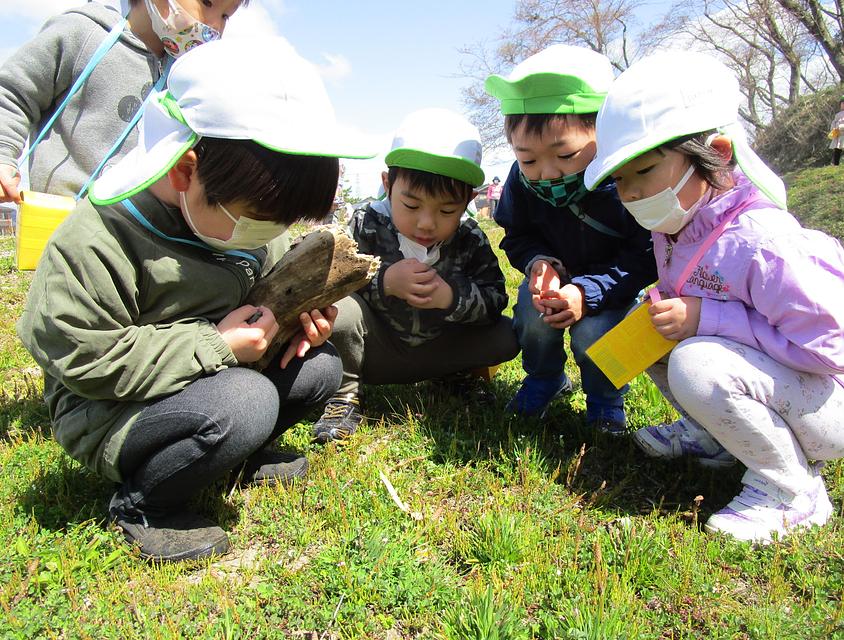 園の周りは田んぼに囲まれているので、頻繁に足を運ぶことができます。たくさんの生き物を見つけることができるので興味津々に。いつも見ている景色が、毎日少しずつ変化していることに気づくことで、こどもたちの「なんで?」といった好奇心が芽生えます。
