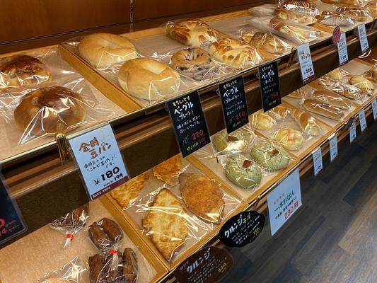 昭和6年に創業し、地元で長年愛されているパン屋。名物は、生地に能登特産の中島菜を練りこみ、能登大納言小豆をたっぷりと詰め込んだ一本杉パン。午前7時半オープンなので朝ごはんにも。