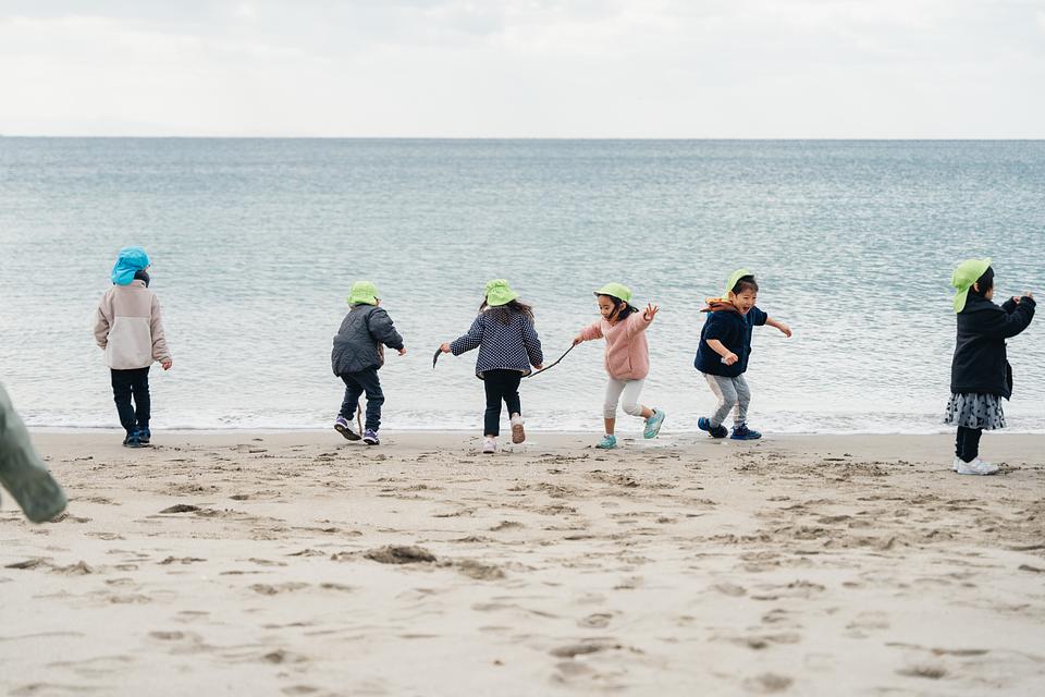 海は身近な存在で、磯遊びは園外保育の定番です。また公園に自然探索に出かけたり、30分かけて徒歩で遊びに行くこともしばしば。異年齢児が一緒に活動するため、喧嘩も日常茶飯事ですが、職員は必要以上に介入しません。こども同士の対話を大切にし、自分の思いを自分の言葉で伝える力を育みます。