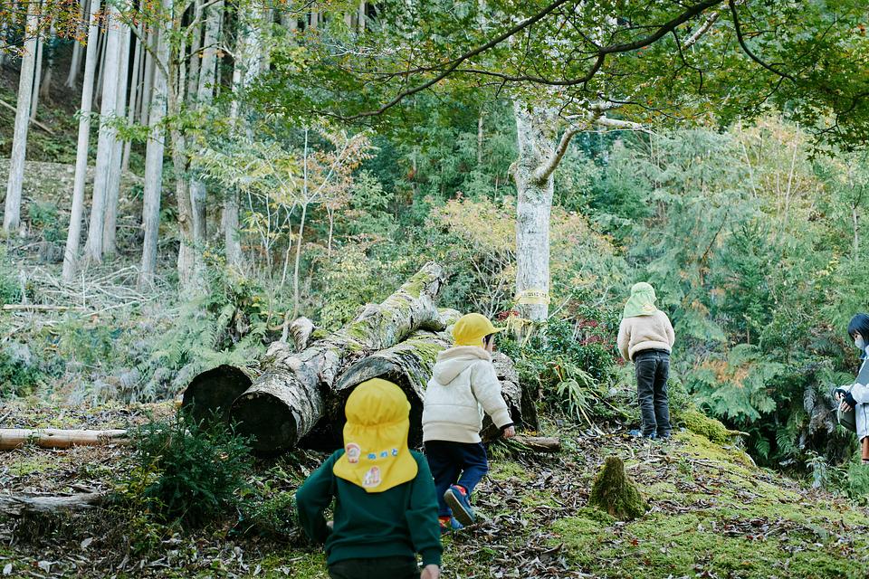 ぐるりと山に囲まれた里山にある当園のこどもたちは、地域の方々から本当に愛されています。林業やレンジャーなど森との関わりが深い仕事をされている方が多く、NPO法人大杉谷自然学校のプログラムに参加させてもらったり、焚き火の安全なやり方・工具類の使い方などを教えてもらったりする行事もたくさん。そういった自然の中での経験を通してこどもたちは主体的に考える力、協力し合う力、そして創造力を育んでいきます。何より1日で終わってしまう遊びではなく、「また明日も続きをやりたい!」と思えるのが自然遊びの良いところ。春夏秋冬、どの季節にも楽しい遊びがたくさんあり、こどもたちの意欲をかきたててくれます。ぜひ大台町の美しい自然を満喫しながら、親子でのんびり過ごす日々を送ってもらえたらと思います。