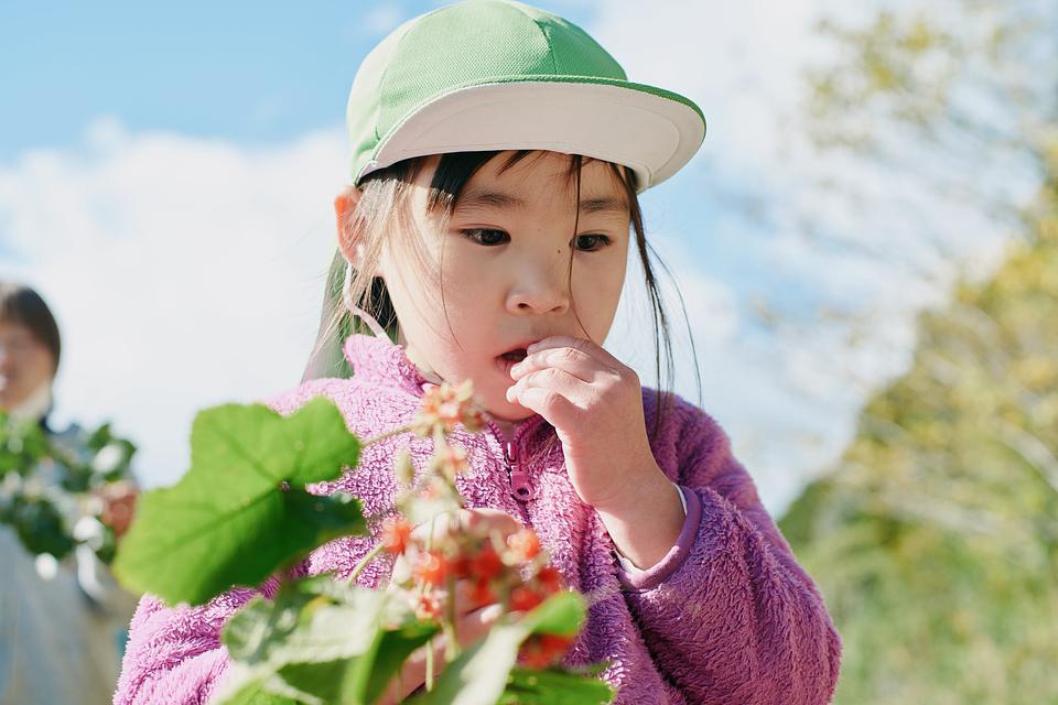 山桃、柿、びわなど園の敷地や近隣に生えている木々に実る果実もこどもたちが大好きなおやつ。食べていいもの・ダメなものを先生や地域の人に教わりながら季節の味覚を楽しみます。冬にはご近所さんの敷地内に実る「冬苺」の差し入れも。一粒ずつちぎって、「すっぱいかな?」と確かめながらパクリ!
