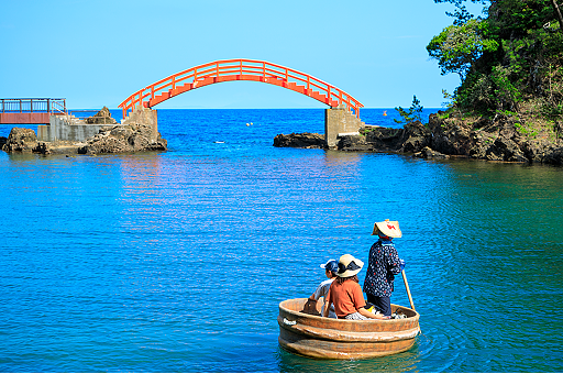 佐渡の小木地区で体験できるたらい舟は、地元の伝統漁法にルーツを持つユニークな舟です。船頭さんの操縦で、透き通った海の上をゆったり進む時間は、非日常的。まるでタイムスリップしたような舟旅で、美しい海の景色や魚たちを間近に楽しめます。こどもから大人まで楽しめるアクティビティとして人気です。