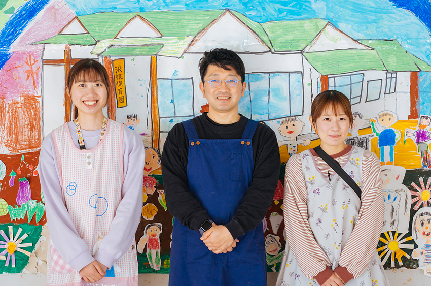ものづくりや遊びを通して感性や知性を働きかけることは、沢根保育園で大切にされているポイント。まずはこどものありのままの姿を受け入れ、認めます。そしてこどもの気づきや活動をきっかけに、先生がこどもの「やりたい」をサポートし「この体験は何にいかせるのか?結果、どういった部分が育つのか?」を考えながら、その遊びがもっと広げられるように関わります。