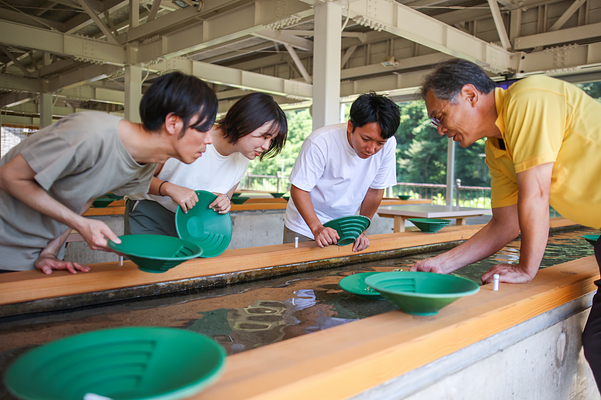 金の島「佐渡」で千年の歴史を誇る西三川砂金山にあり、砂金採り体験ができます。本格的な道具を使い、金粒を見つけるドキドキ感はこどもにも大人気!採った砂金はそのままお土産にできるので、家族みんなで夢中になれます。屋内施設なので天気を気にせず楽しめるのも魅力。