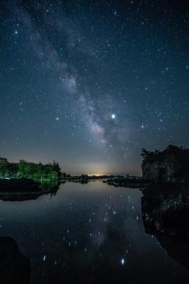 佐渡島は豊かな自然と光害の少なさから、美しい星空が広がる場所。特に海岸線や山間部では、満天の星々が頭上を覆い、天の川や流れ星を肉眼で楽しむことができます。静寂に包まれた夜の佐渡で眺める星空は、日常を忘れさせる感動的なひととき。ル・ブルーの宿から星空を眺めることができます。